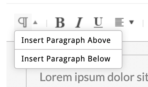 Clicking the icon will add a new paragraph break above or below your selected content—whether that’s text, an image, or another element.