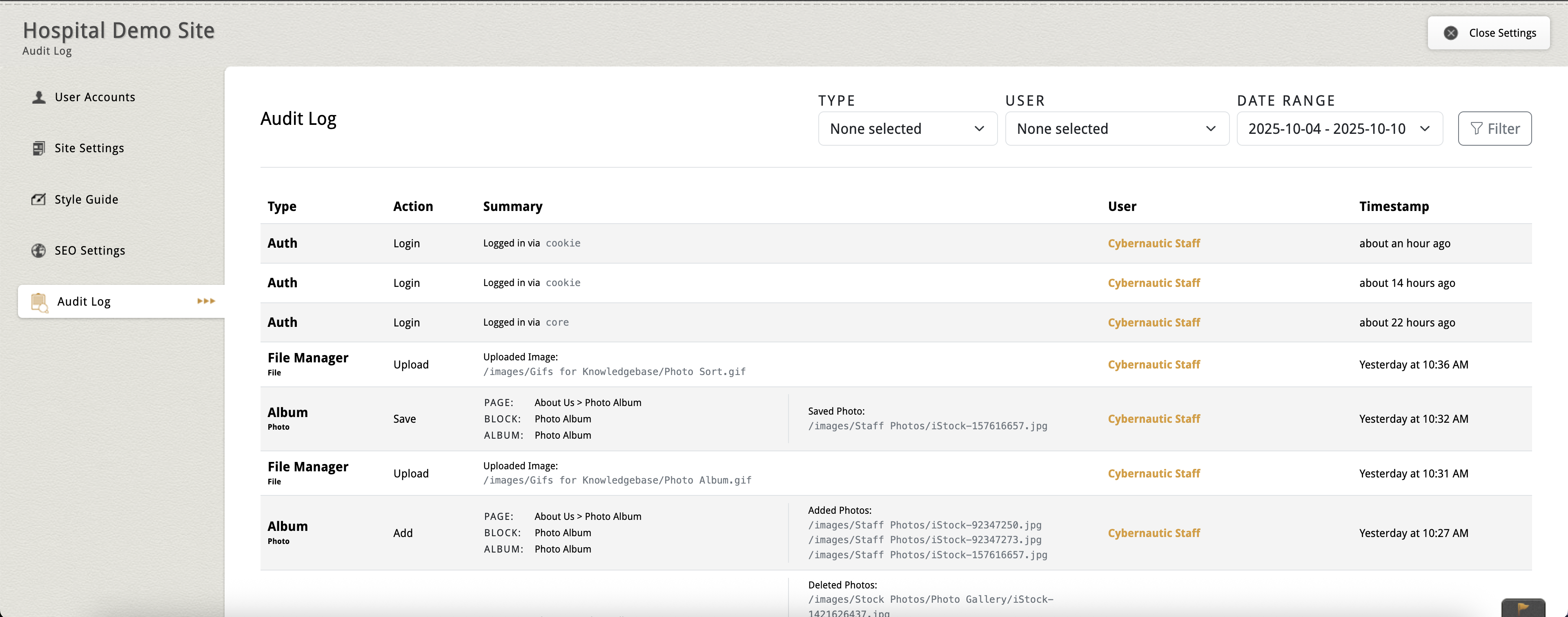Want to add the Audit Log to your site?Reach out to our team for details and pricing! |