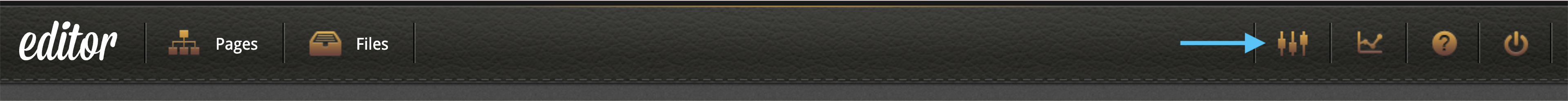 You’ll find the Settings icon in the top right corner of Editor’s black navigation bar. It looks like a set of audio sliders.