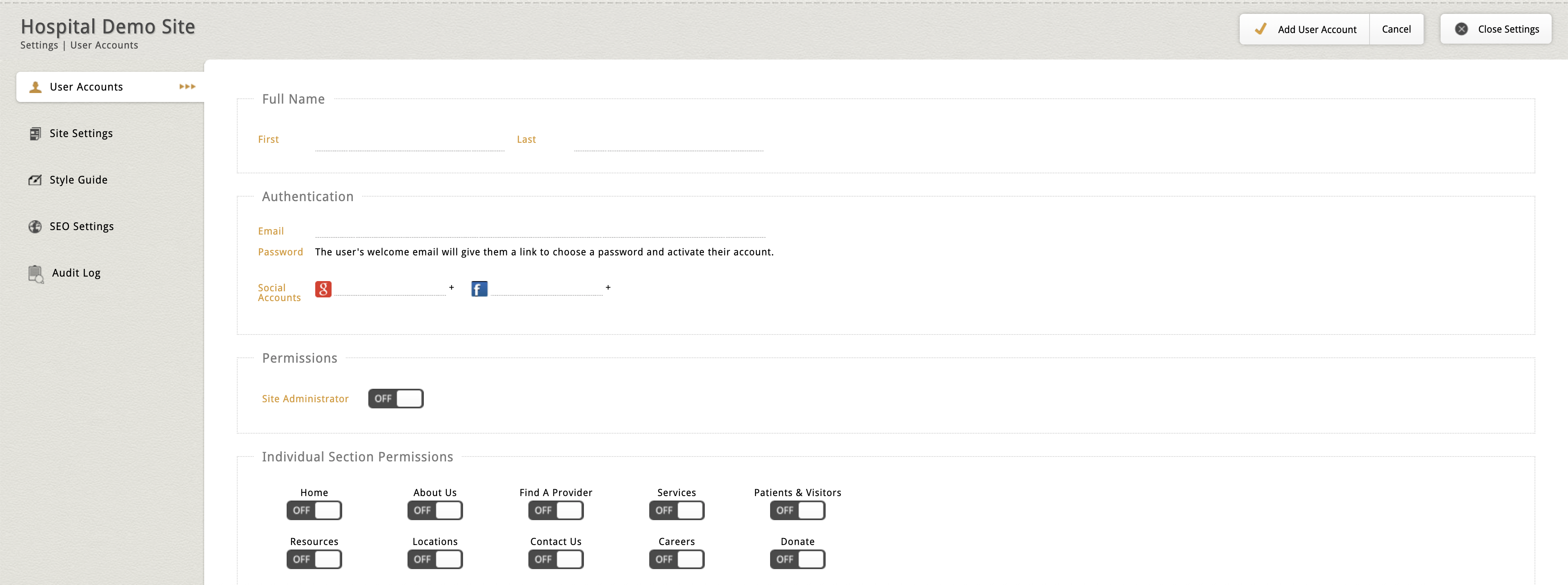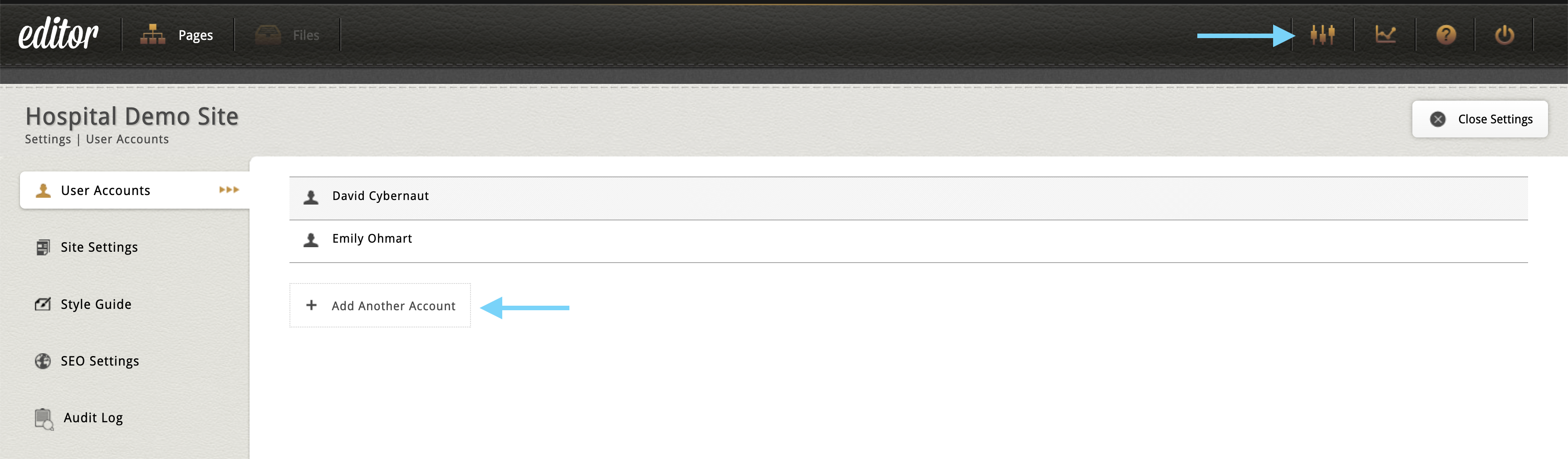 Note: It’s best practice to create an account for each individual user that will be making edits to your website. This way you can better track who made what changes when, especially if you have the audit log enabled.
