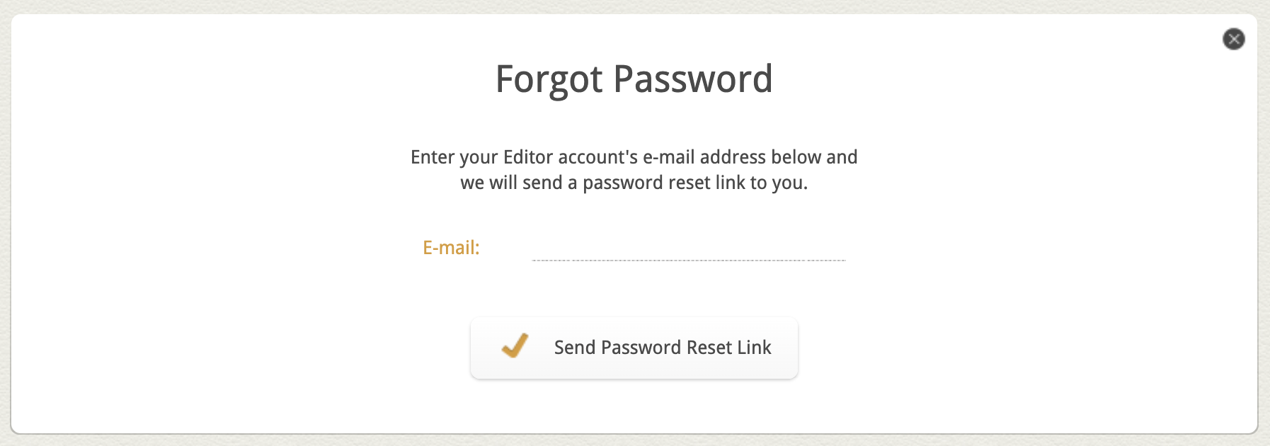 Instruct the user to click the "Forgot your Password?" button on the Editor login screen. They will be prompted to enter their email address and the system will send them a reset password link as long as it matches the email on an account in your Editor.