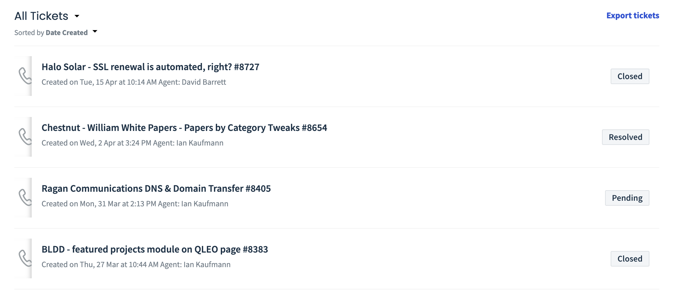 You're also able to see and manage all previously submitted tickets in one view as well, keeping everything organized in one place.
